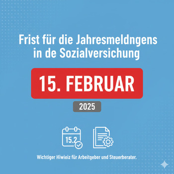 Frist für Jahresmeldungen in der Sozialversicherung: 15. Februar